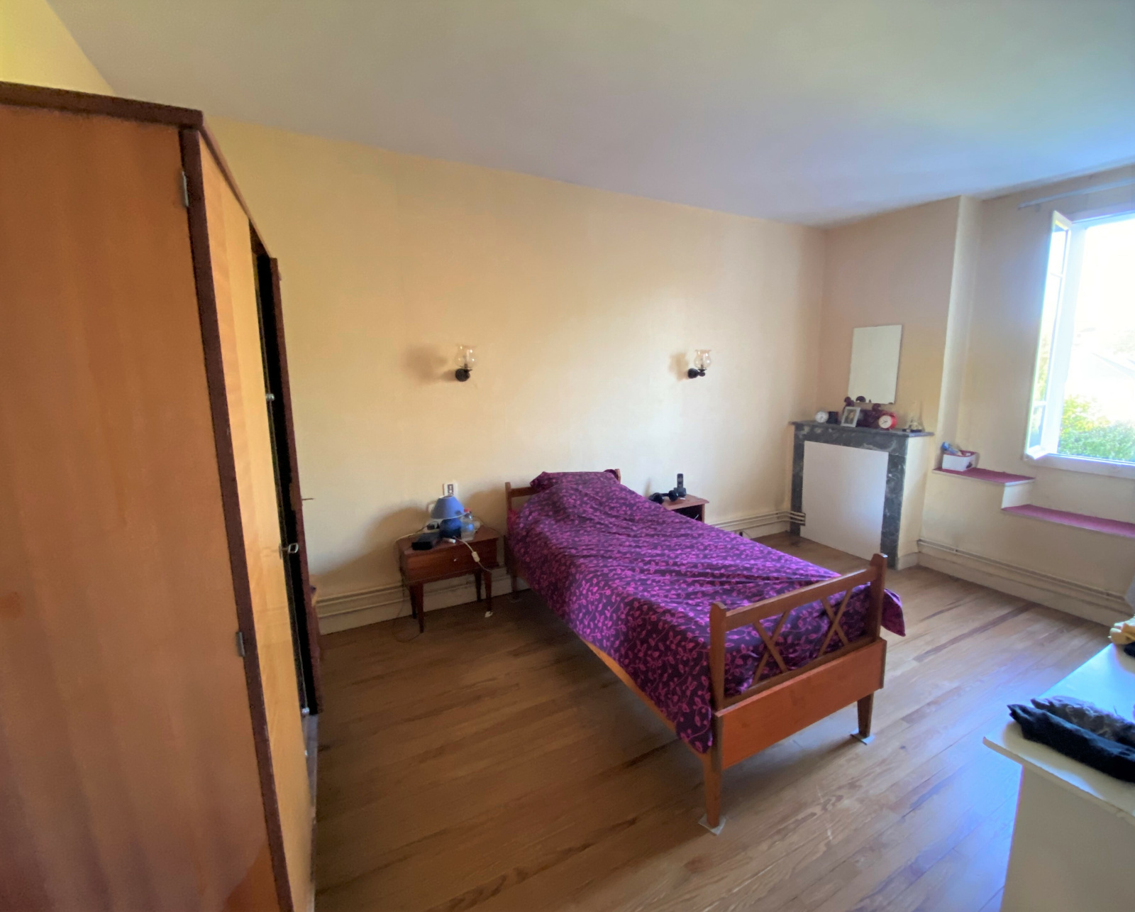 cheminée et accès jardin