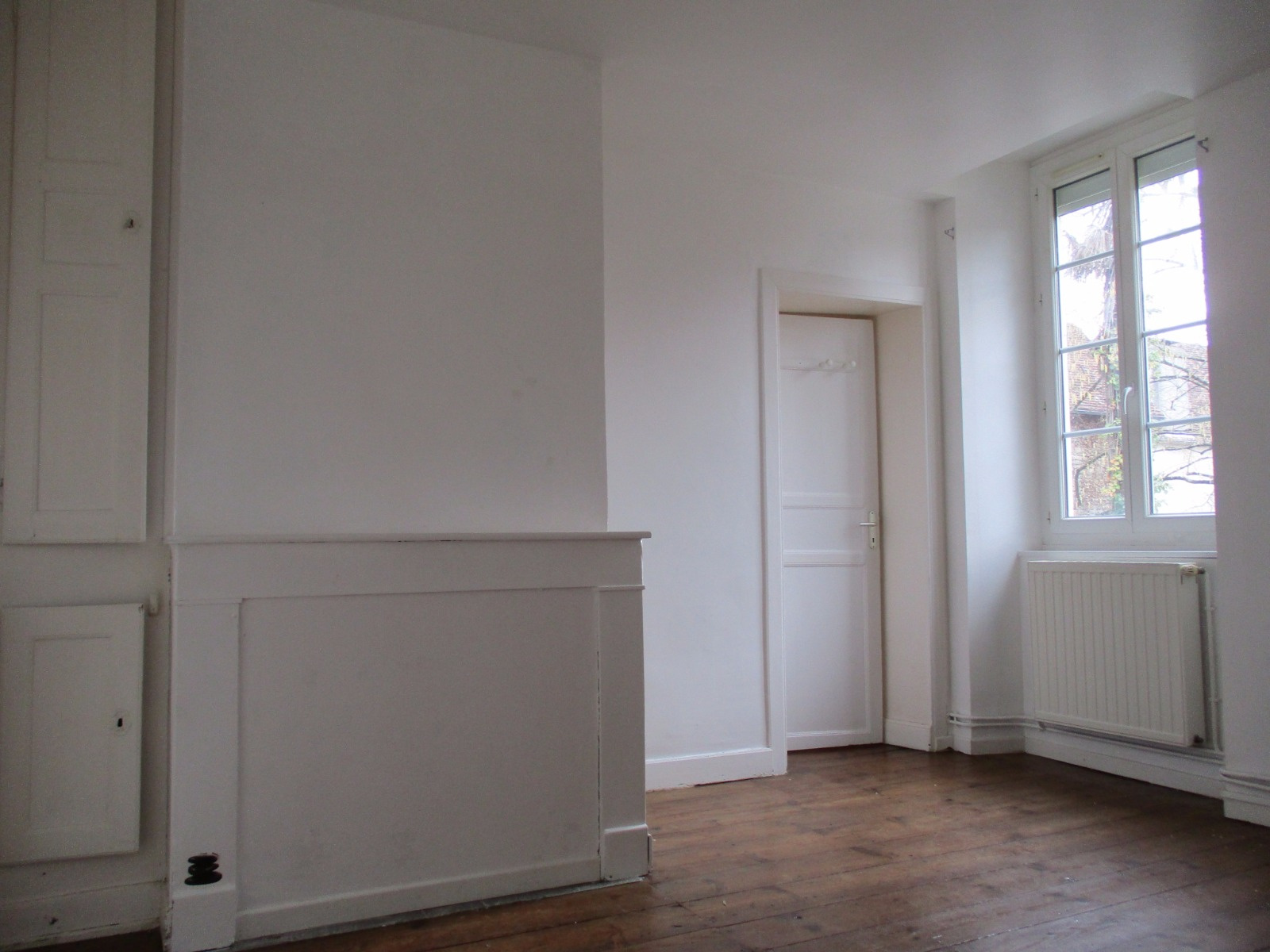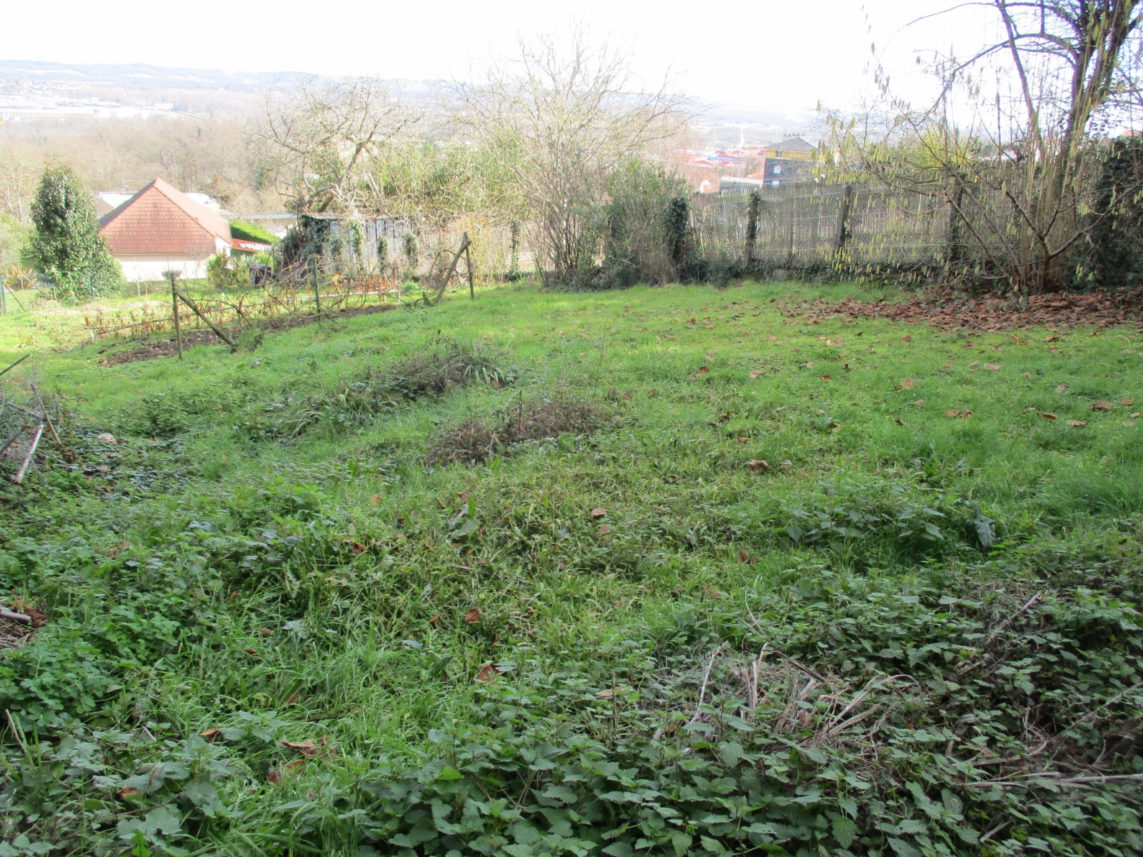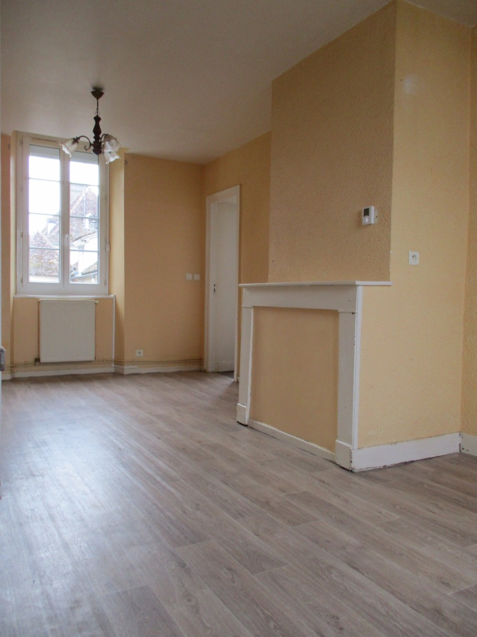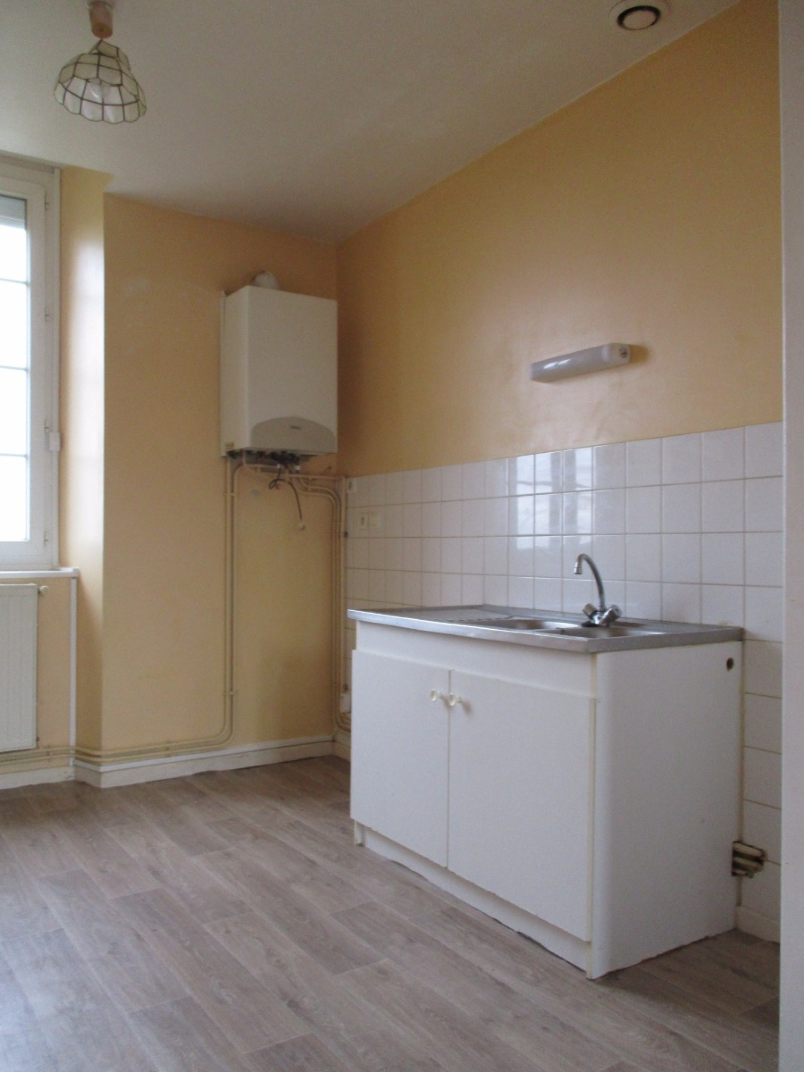Entrée, séjour double et cuisine ouverte, deux chambres, salle d'eau, wc, combles aménageables.